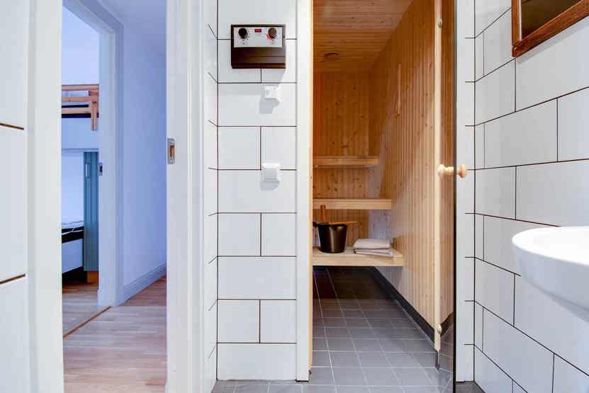 Badeværelse 1 = bruser/WC/sauna. Badeværelse 2 = bruser/WC.