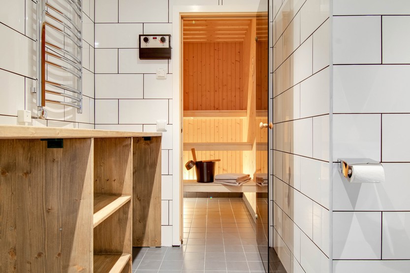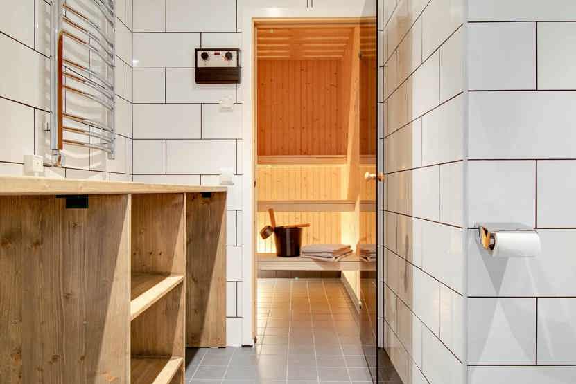 Badeværelse 1 = bruser/WC/sauna. Badeværelse 2 = bruser/WC.