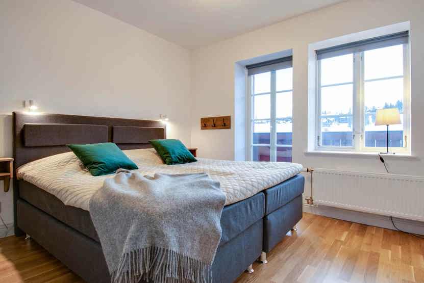Skalets torg, Sporthuset ligger i Vemdalsskalet. Lejlighed, Placeret på 3. etage, 4 sengepladser, 60 kvm, alrum med køkkenafdeling, 2 soveværelse, 1 bruser, 1 WC, sauna.