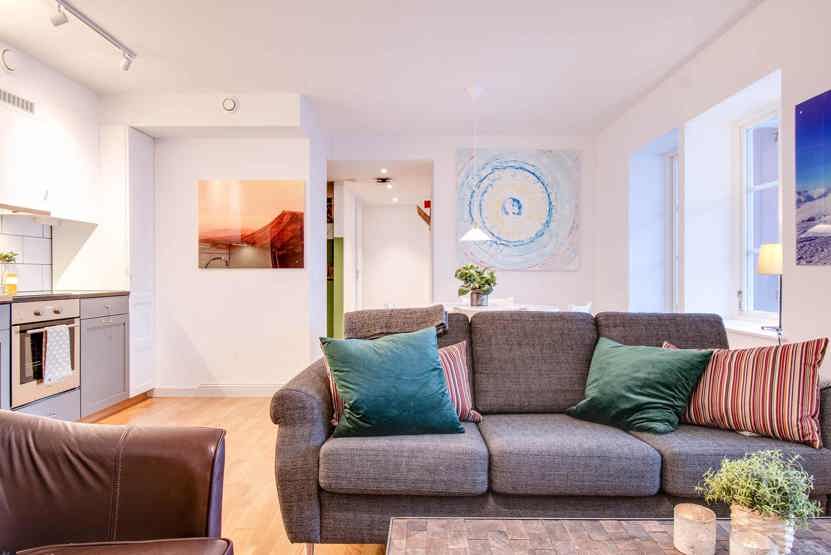 vaskemaskine, tørreskab, 2 balkoner (der skovles ikke sne), skiopbevaring, med en fælles indgang, elevator findes i huset, 1 parkeringsplads.
