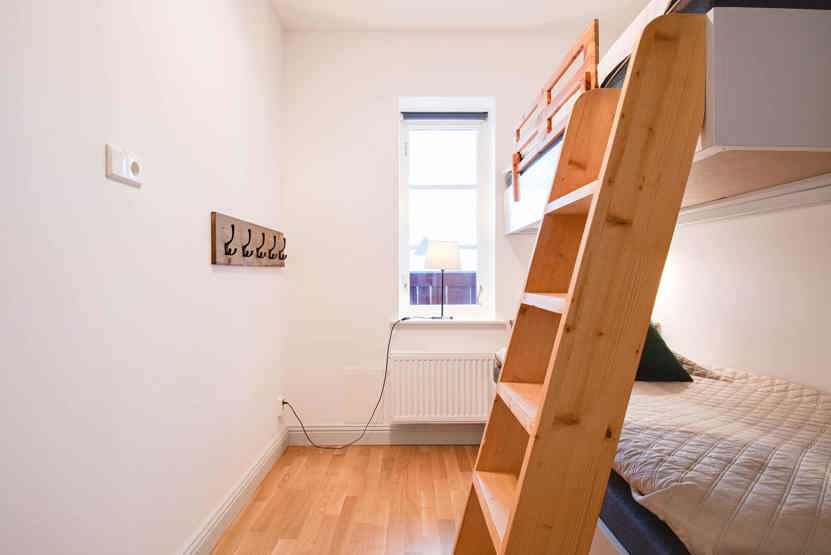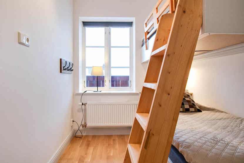 Soveværelse-1 = 1 dobbeltseng. Soveværelse-2 = 1 køjeseng med 90 cm bred underkøje og 80 cm bred overkøje. Soveværelse-3 = 1 køjeseng med 90 cm bred underkøje og 80 cm bred overkøje.