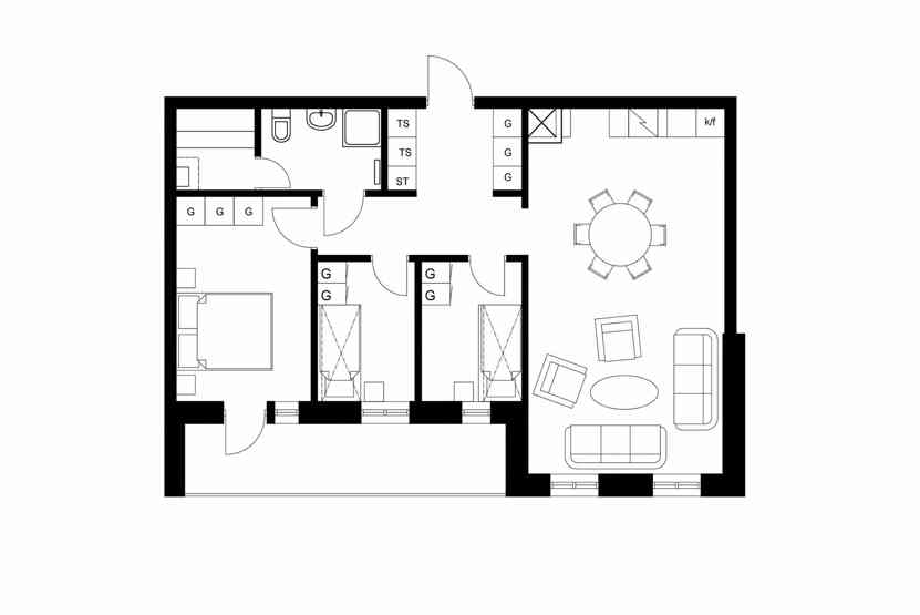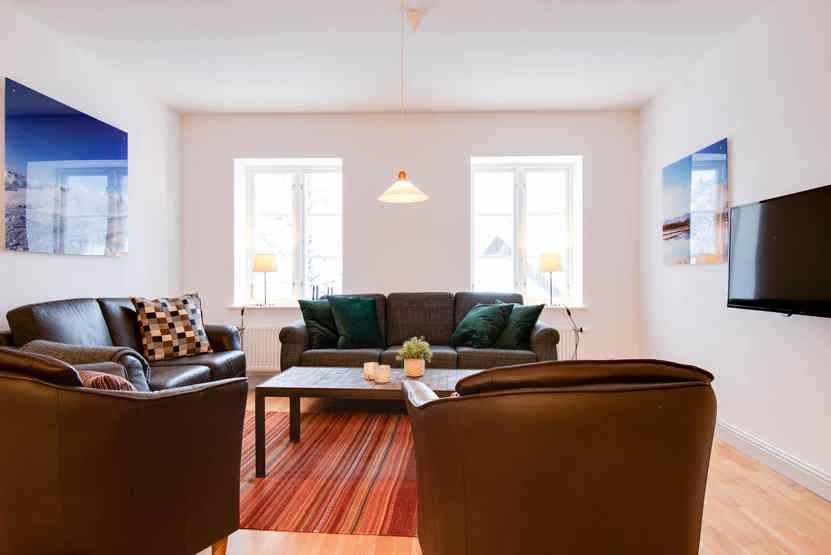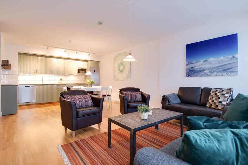 vaskemaskine, tørreskab, balkon (der skovles ikke sne), skiopbevaring, med en fælles indgang, elevator findes i huset, 2 parkeringspladser.