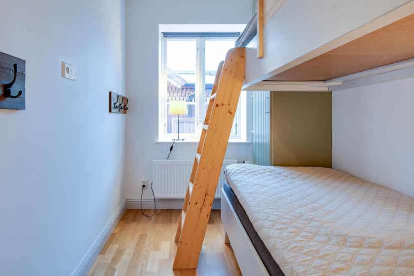 Soveværelse-1 = 1 dobbeltseng. Soveværelse-2 = 1 køjeseng med 90 cm bred underkøje og 80 cm bred overkøje. Soveværelse-3 = 1 køjeseng med 90 cm bred underkøje og 80 cm bred overkøje. Soveværelse-4 = 1 dobbeltseng. Soveværelse-5 = 1 køjeseng med 90 cm bred underkøje og 80 cm bred overkøje.