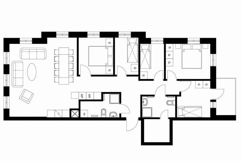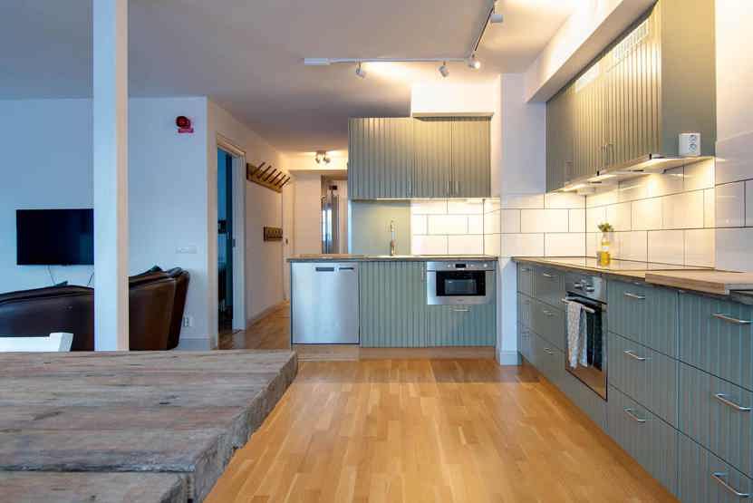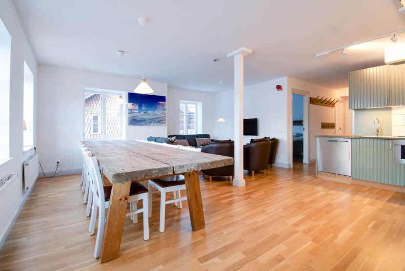 vaskemaskine, tørreskab, balkon (der skovles ikke sne), skiopbevaring, med en fælles indgang, elevator findes i huset, 3 parkeringspladser.