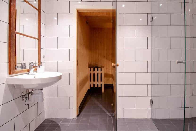 Badeværelse 1 = bruser/WC/sauna. Badeværelse 2 = bruser/WC.