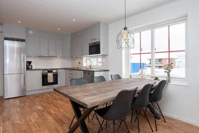 vaskemaskine, tørretumbler, tørreskab, balkon/altan (der skovles ikke sne), skiopbevaring, 1 parkeringsplads.