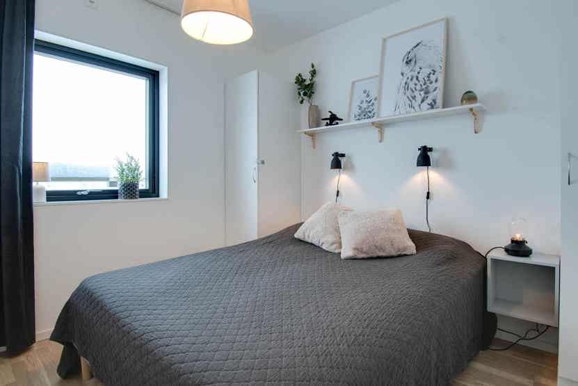 Soveværelse-1 = 1 dobbeltseng. Soveværelse-2 = 1 dobbeltseng. Soveværelse-3 = 1 køjeseng med 120 cm bred underkøje. Soveværelse-4 = 1 køjeseng hvor både over og underkøje er 80 cm bred.
