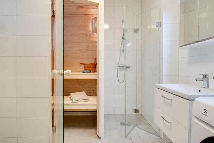 vaskemaskine, tørre garderobe (garderob med radiator), balkon/altan (der skovles ikke sne), skiopbevaring, 2 parkeringspladser.