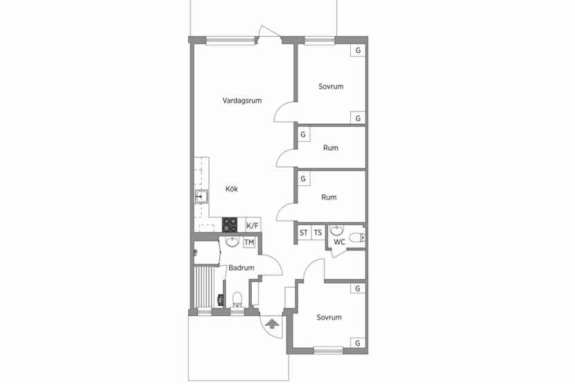Storhogna Torg Apartments ligger i Storhogna. Lejlighed på første etage, 8 sengepladser, 75 kvm, alrum med køkkenafdeling, 4 soveværelse, 1 bruser, 2 WC, sauna.
