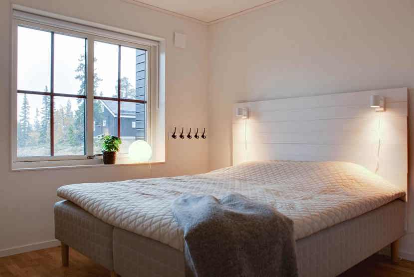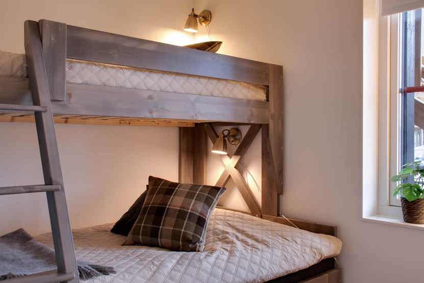 Soveværelse-1 = 1 dobbeltseng 180 cm bred. Soveværelse-2 = 1 enkeltseng 140 cm bred. Soveværelse-3 = 1 køyeseng med 120 cm bred underkøye og 80 cm bred overkøye.