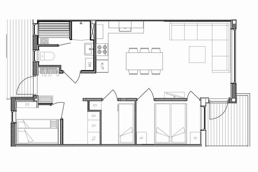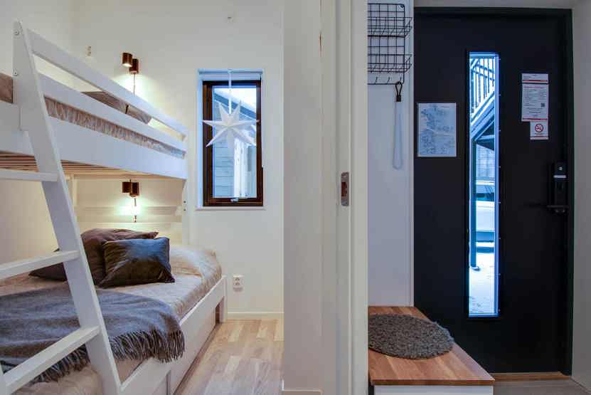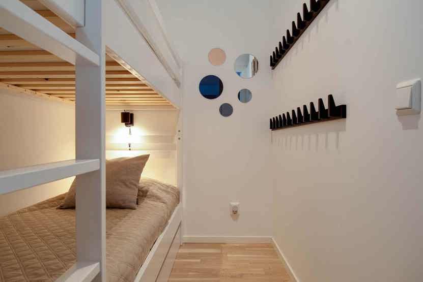 Soveværelse-1 = 1 dobbeltseng 160 cm bred. Soveværelse-2 = 1 køyeseng med 120 cm bred underkøye og 90 cm bred overkøye. Soveværelse-3 = 1 køjeseng.