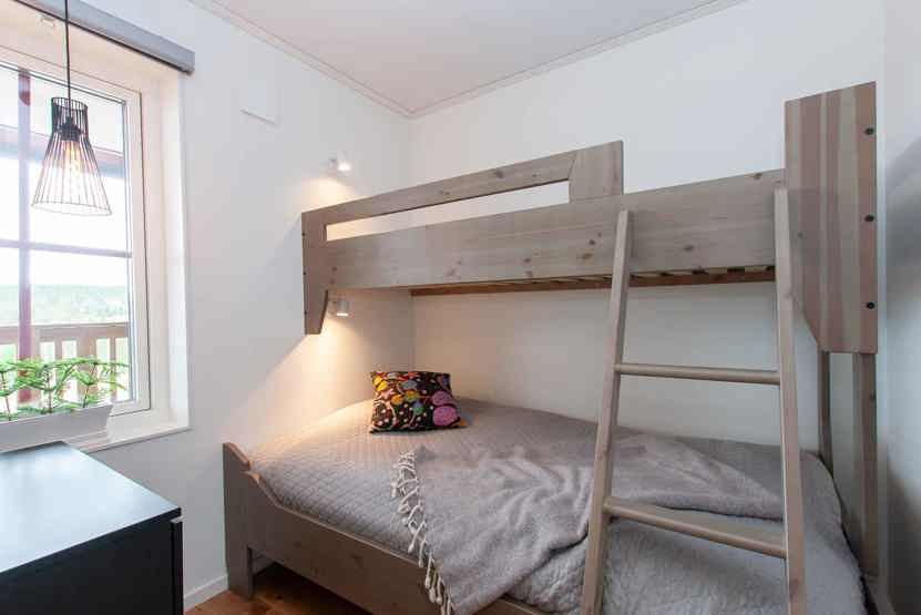 Soveværelse-1 = 1 dobbeltseng 180 cm bred. Soveværelse-2 = 1 dobbeltseng 160 cm bred. Soveværelse-3 = 1 køyeseng med 120 cm bred underkøye og 80 cm bred overkøye.
