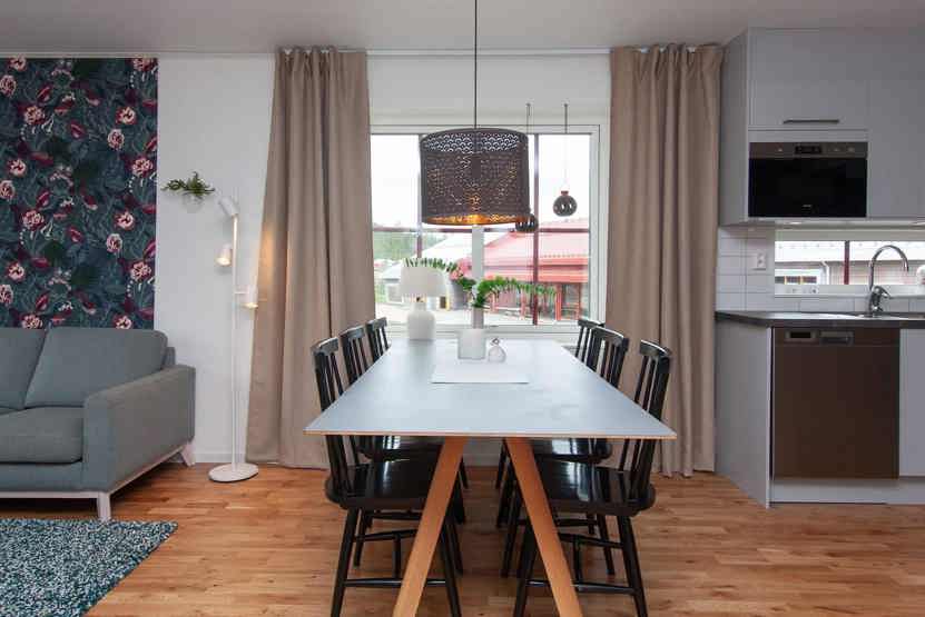 Storhogna Torg Apartments ligger i Storhogna. Lejlighed på første etage, 6+1 sengepladser, 78 kvm, alrum med køkkenafdeling, 3 soveværelse, 1 bruser, 2 WC, sauna.