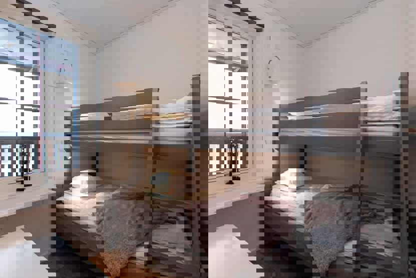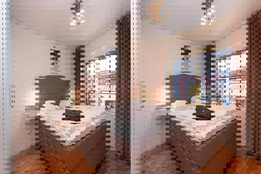 Soveværelse-1 = 1 dobbeltseng 180 cm bred. Soveværelse-2 = 1 dobbeltseng 160 cm bred. Soveværelse-3 = 1 køyeseng med 120 cm bred underkøye og 90 cm bred overkøye.