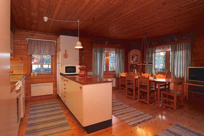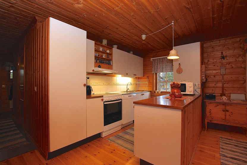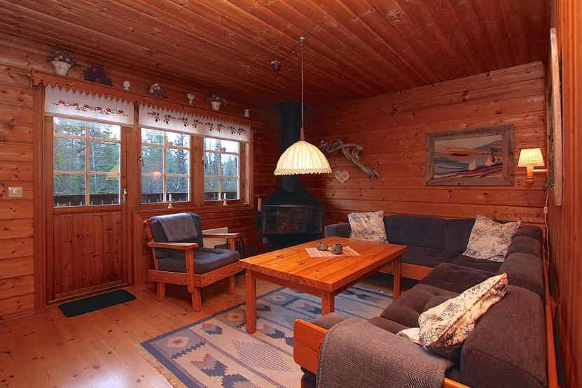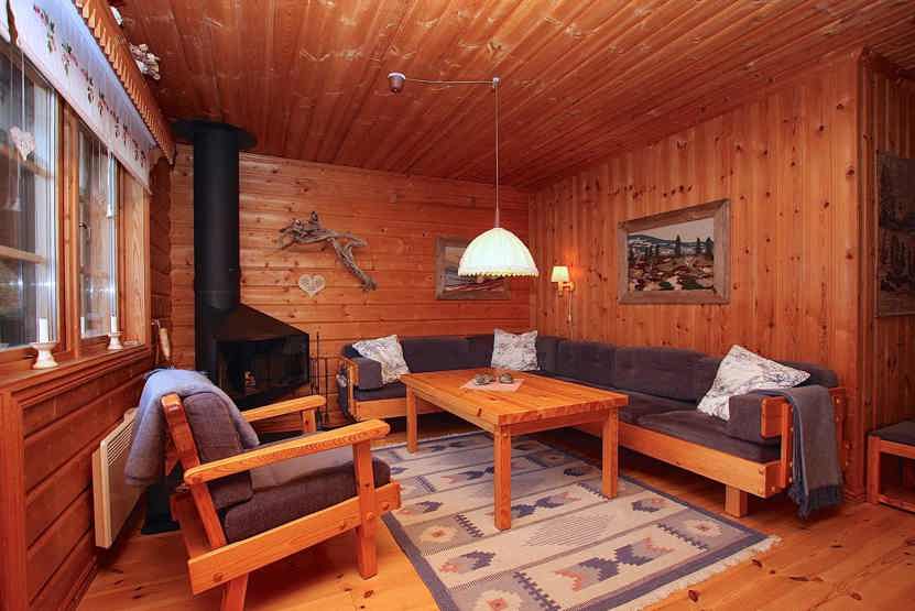 Stue med TV, lille køkkenafdeling, brændeovn (brænde indgår ikke).