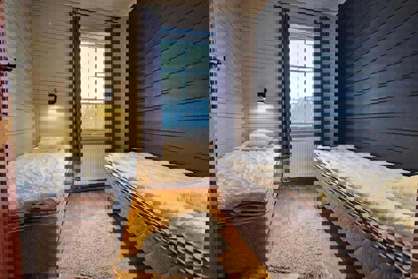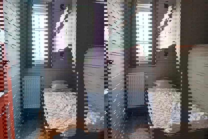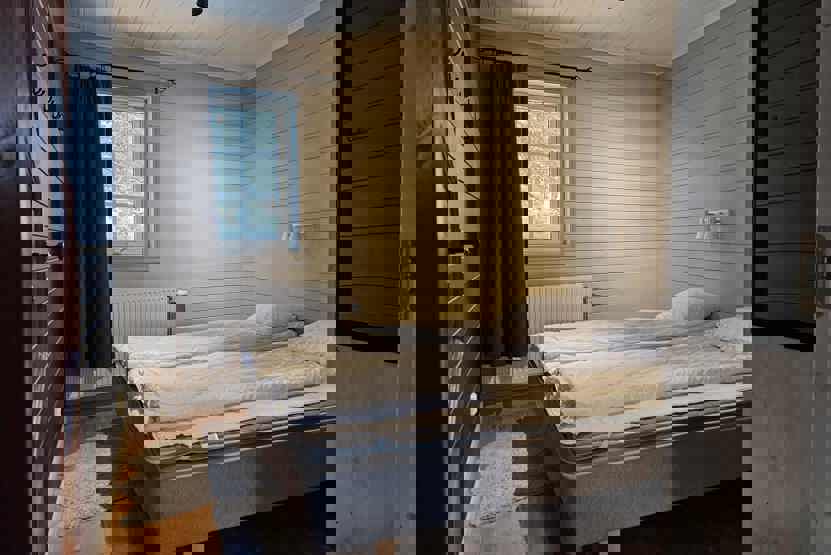 Soveværelse-1 = 1 dobbeltseng. Soveværelse-2 = 1 dobbeltseng. Soveværelse-3 = 2 enkeltsenge. Soveværelse-4 = 1 køjeseng med 120 cm bred underkøje. Soveværelse-5 = 1 køjeseng med 120 cm bred underkøje.