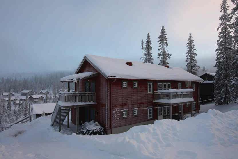 Strömfjällsdalen ligger i Vemdalsskalet. Lejlighed på første etage, 10 sengepladser, 130 kvm, alrum med køkkenafdeling, 5 soveværelse, 2 brusere, 2 WC, sauna.