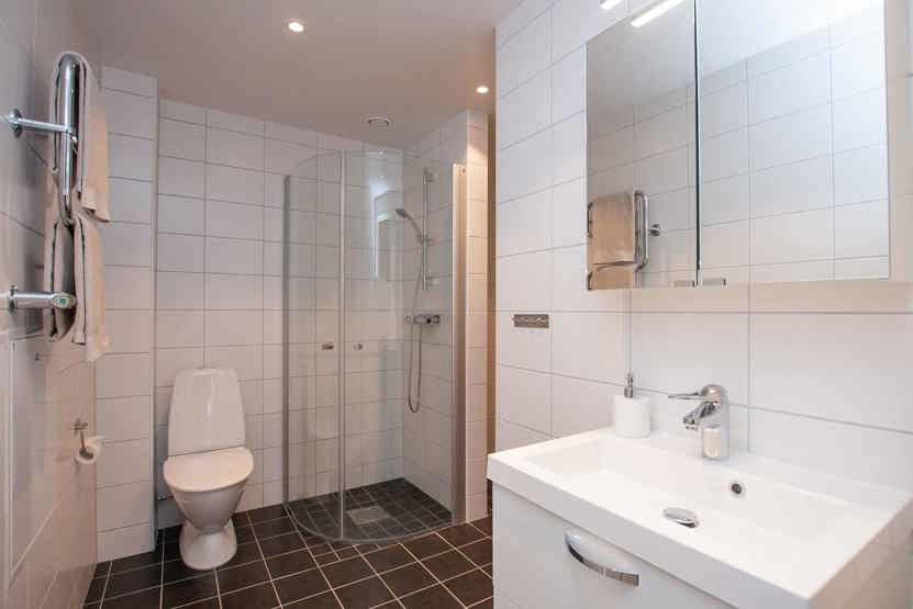 Badeværelse 1 = bruser, WC samt lille sauna. Badeværelse 2 = wc.