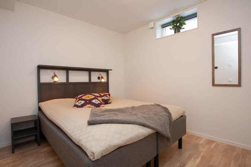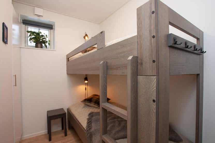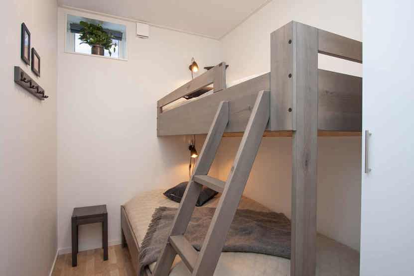Soveværelse-1 = 1 dobbeltseng 160 cm bred. Soveværelse-2 = 1 køyeseng med 120 cm bred underkøye og 80 cm bred overkøye. Soveværelse-3 = 1 køjeseng hvor både over og underkøje er 80 cm bred.
