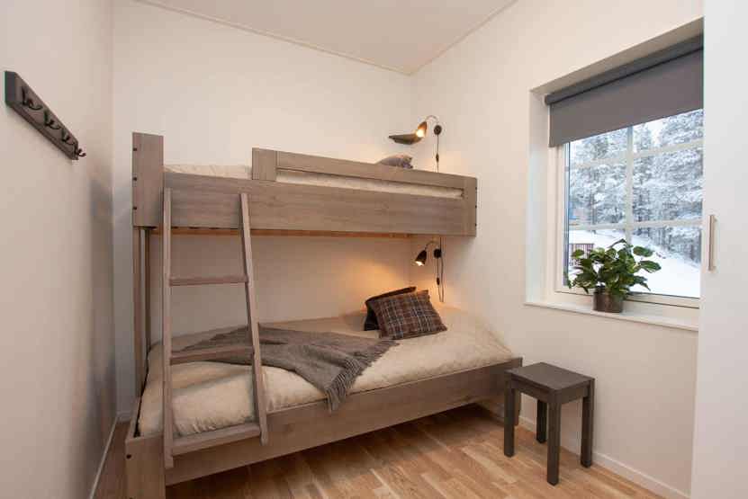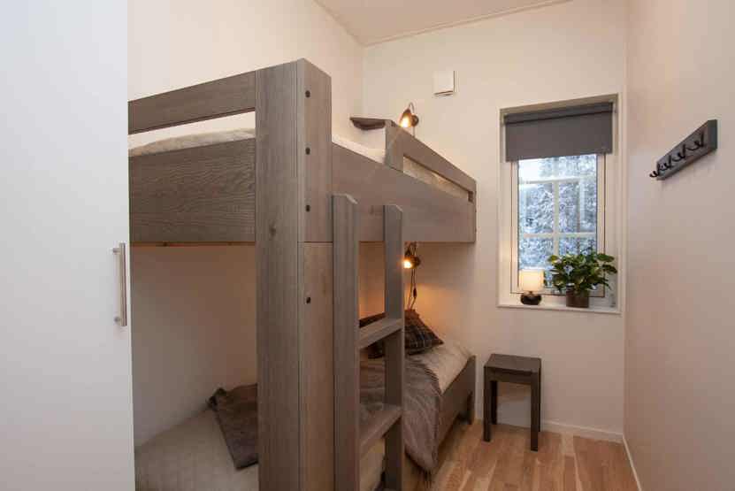 Soveværelse-1 = 1 dobbeltseng 160 cm bred. Soveværelse-2 = 1 køjeseng med 120 cm bred underkøje. Soveværelse-3 = 1 køjeseng hvor både over og underkøje er 80 cm bred.