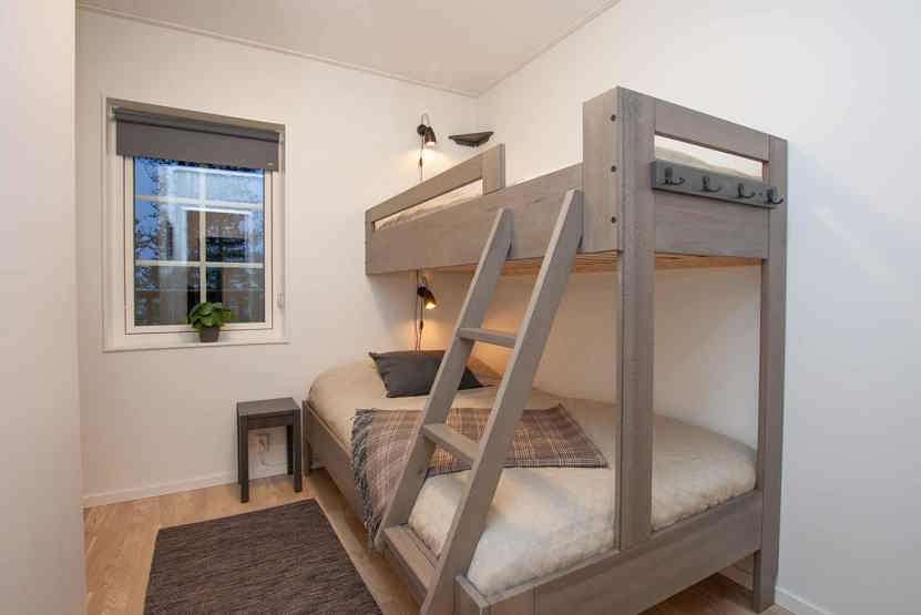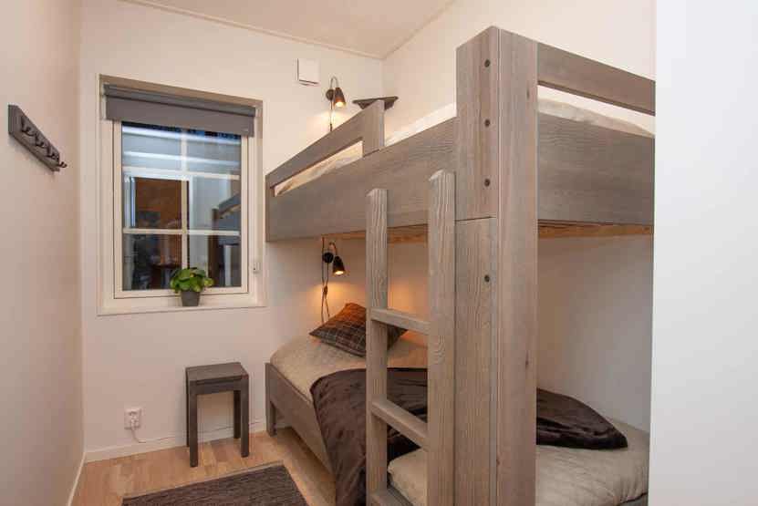 Soveværelse-1 = 1 dobbeltseng 160 cm bred. Soveværelse-2 = 1 køjeseng med 120 cm bred underkøje. Soveværelse-3 = 1 køjeseng hvor både over og underkøje er 80 cm bred.