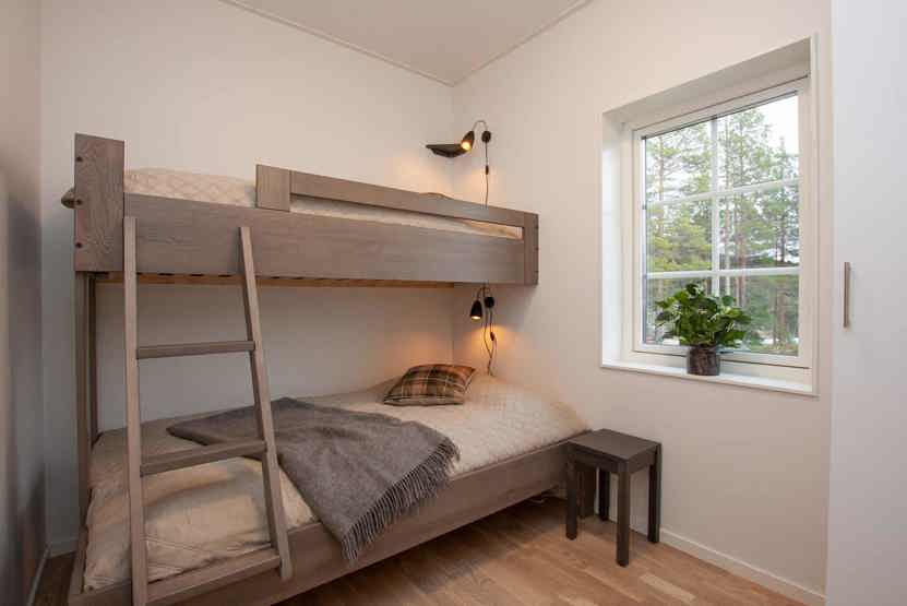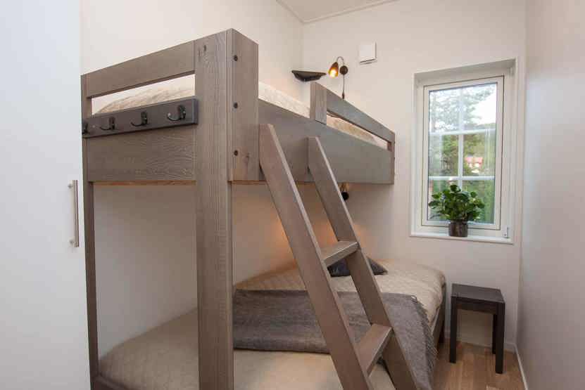 Soveværelse-1 = 1 dobbeltseng 160 cm bred. Soveværelse-2 = 1 køjeseng med 120 cm bred underkøje. Soveværelse-3 = 1 køjeseng med 120 cm bred underkøje.