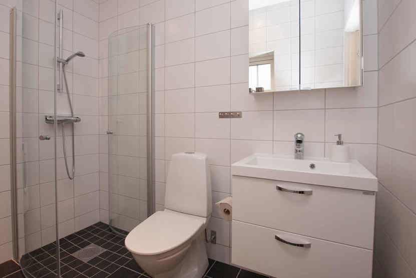 Badeværelse 1 = bruser, WC samt lille sauna. Badeværelse 2 = wc.