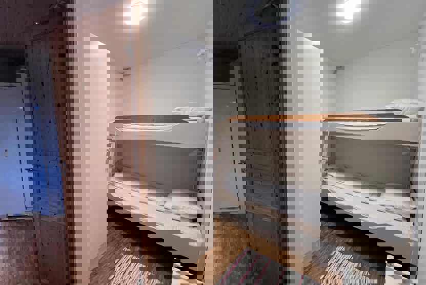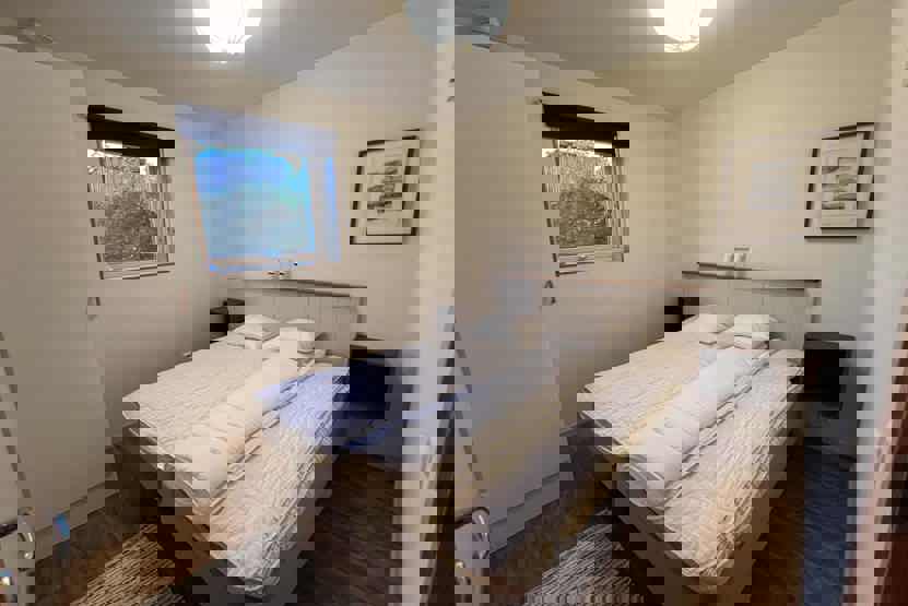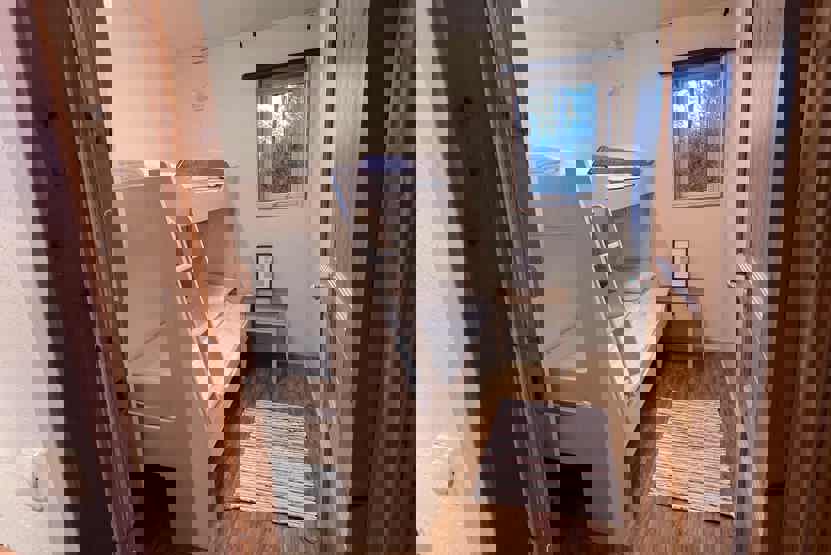 Soveværelse-1 = 1 dobbeltseng som kan laves om til to enkeltsenge. Soveværelse-2 = 1 køjeseng med 105 cm bred underkøje og 80 cm bred overkøje. Soveværelse-3 = 1 køjeseng med 105 cm bred underkøje og 80 cm bred overkøje.