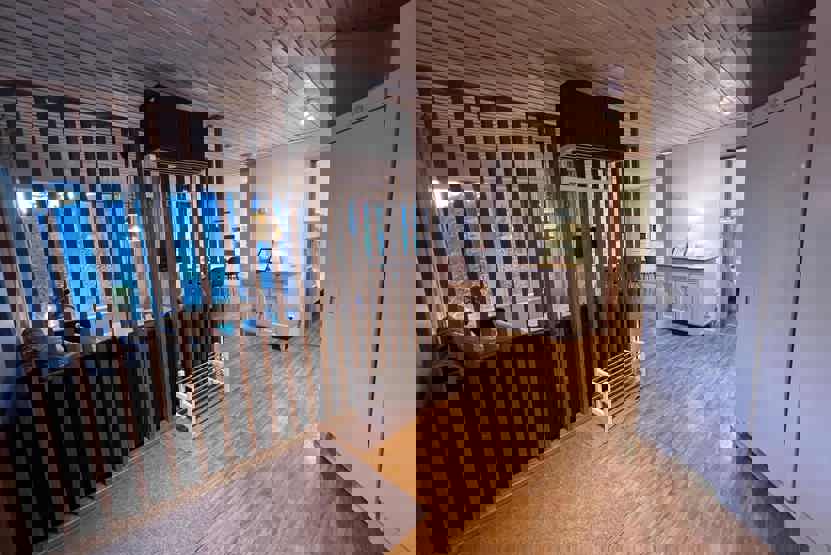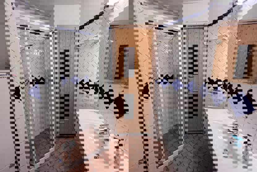 Badeværelse 1 = bruser, WC samt lille sauna. Badeværelse 2 = wc.