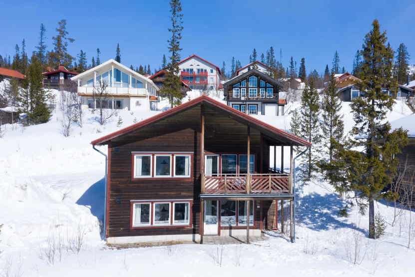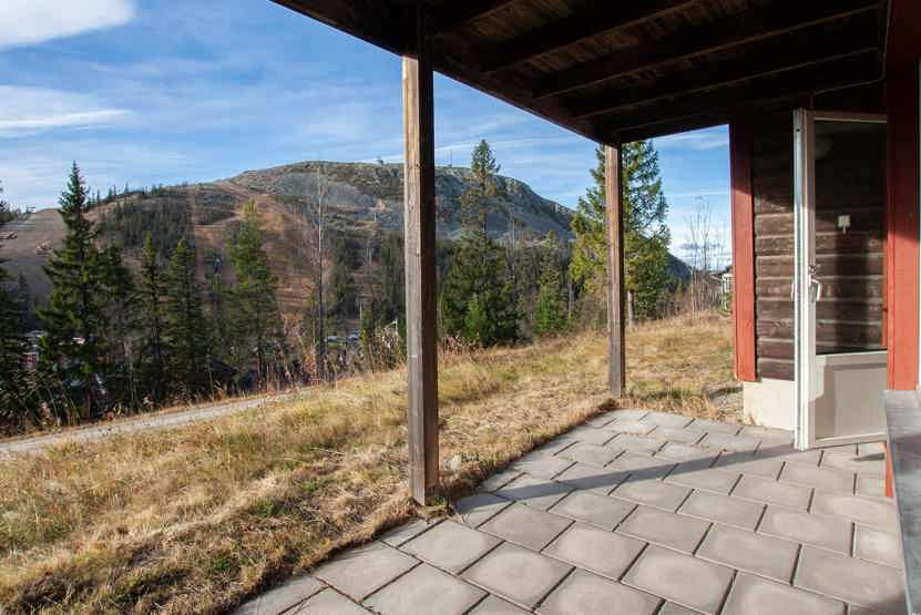 Terrasshusen ligger i Vemdalsskalet. Lejlighed i stueetage, 6 sengepladser, 72 kvm, alrum med køkkenafdeling, 3 soveværelse, 1 bruser, 2 WC, sauna.