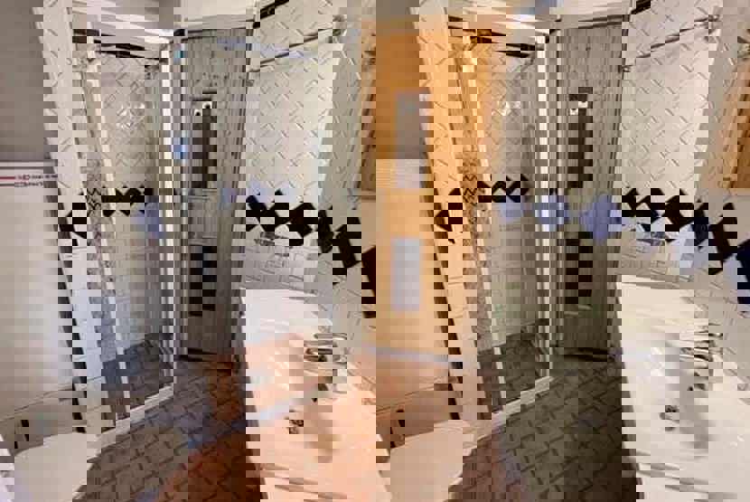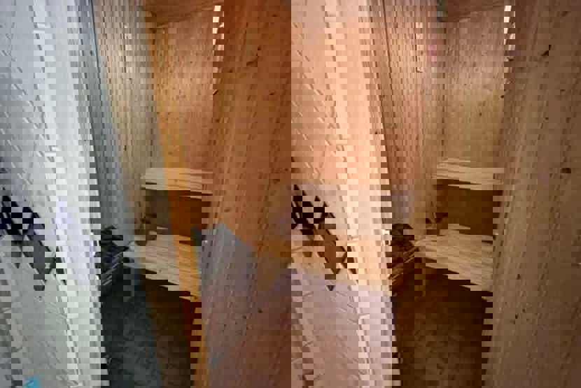 Badeværelse 1 = bruser, WC samt lille sauna. Badeværelse 2 = wc.