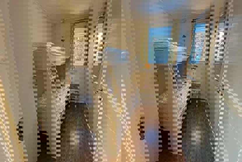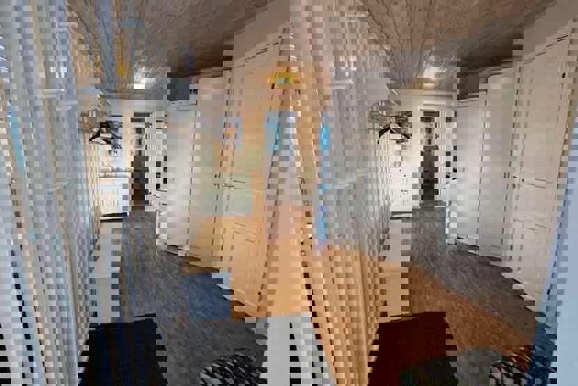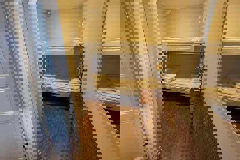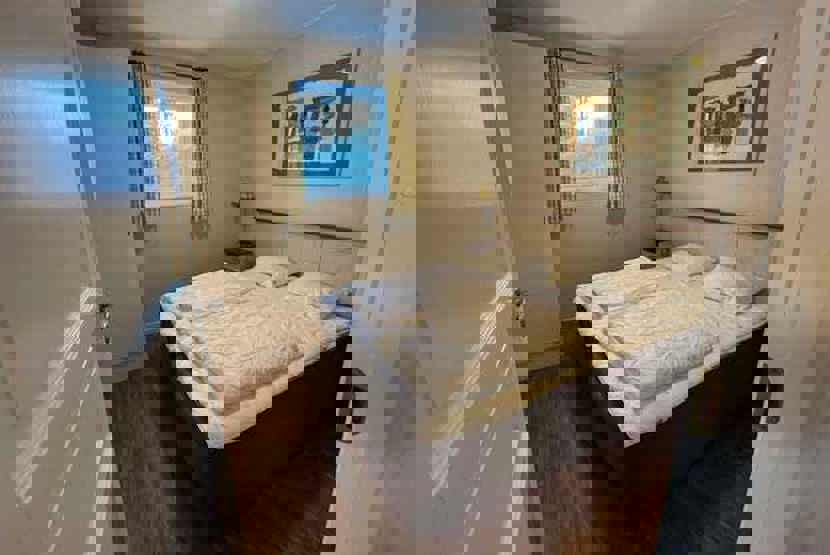 Soveværelse-1 = 1 dobbeltseng. Soveværelse-2 = 1 køjesenge med 105 cm bred underkøje. Soveværelse-3 = 1 køjesenge med 105 cm bred underkøje.