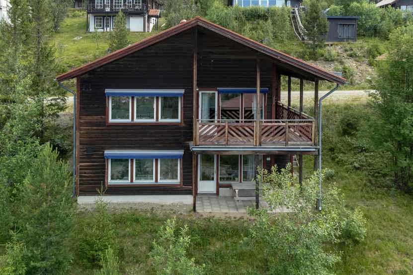 Terrasshusen ligger i Vemdalsskalet. Lejlighed i stueetage, 6 sengepladser, 72 kvm, alrum med køkkenafdeling, 3 soveværelse, 1 bruser, 2 WC, sauna.