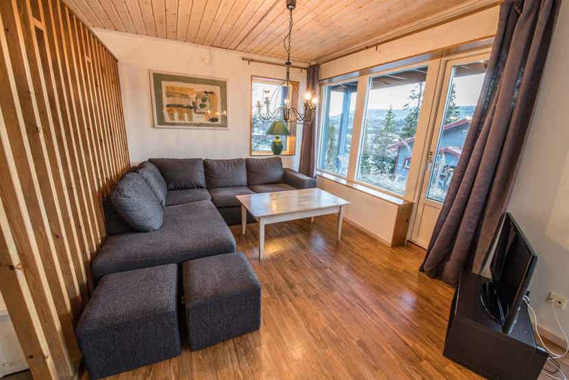 Terrasshusen ligger i Vemdalsskalet. Lejlighed i stueetage, 6 sengepladser, 72 kvm, alrum med køkkenafdeling, 3 soveværelse, 1 bruser, 2 WC, sauna.