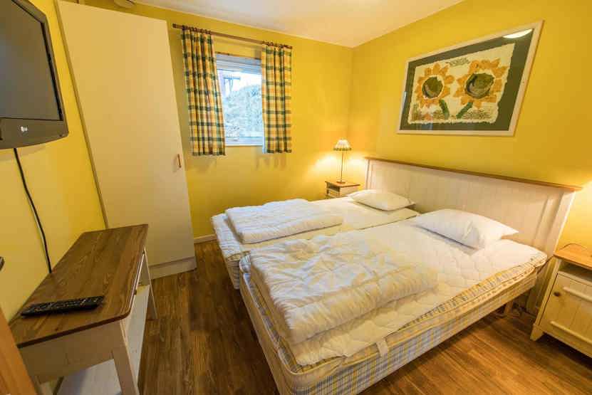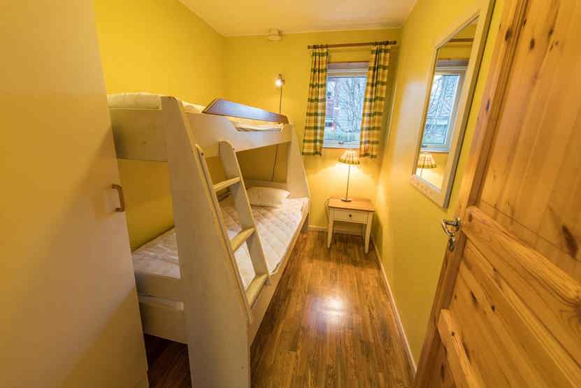 Soveværelse-1 = 1 dobbeltseng. Soveværelse-2 = 1 køjeseng med 110 cm bred underkøje. Soveværelse-3 = 1 køjeseng med 110 cm bred underkøje.