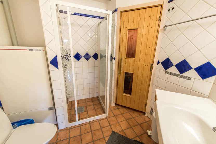 Badeværelse 1 = bruser, WC samt lille sauna. Badeværelse 2 = wc.