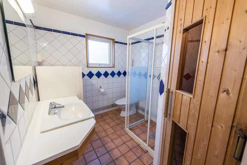 Badeværelse 1 = bruser, WC samt lille sauna. Badeværelse 2 = wc.