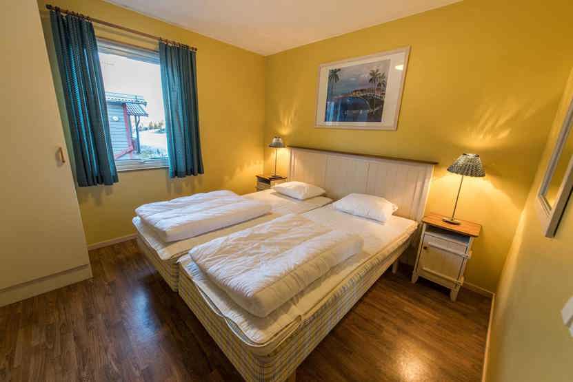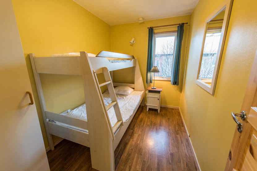 Soveværelse-1 = 1 dobbeltseng. Soveværelse-2 = 1 køjeseng med 110 cm bred underkøje. Soveværelse-3 = 1 køjeseng med 110 cm bred underkøje.