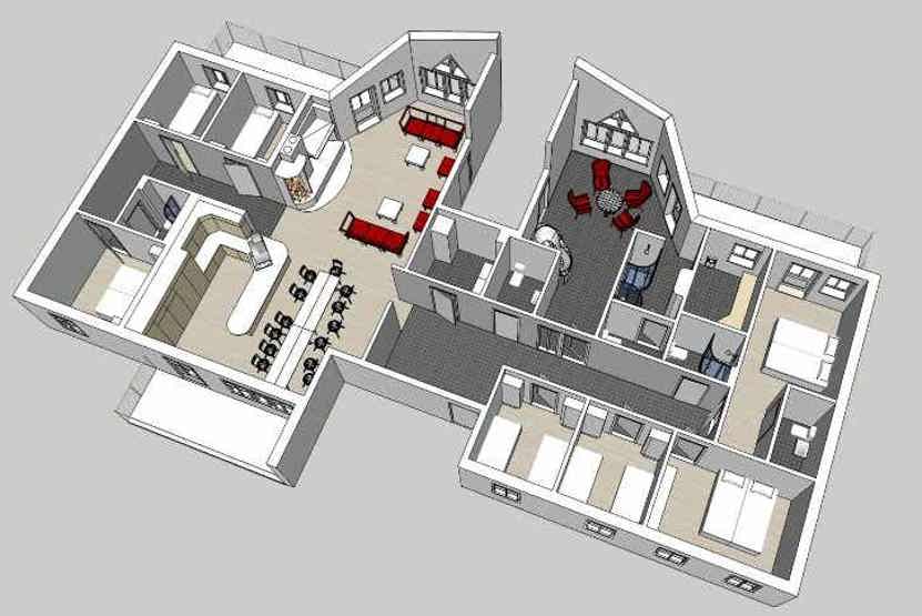 Soveværelse-1 = 1 dobbeltseng, indgangen til badeværelse 2. Soveværelse-2 = 1 dobbeltseng. Soveværelse-3 = 1 dobbeltseng. Soveværelse-4 = 2 enkeltsenge. Soveværelse-5 = 2 enkeltsenge. Soveværelse-6 = 2 enkeltsenge. Soveværelse-7 = 2 enkeltsenge.