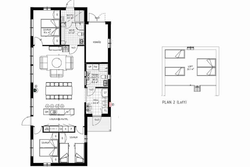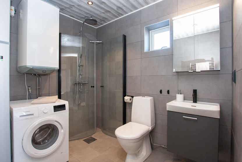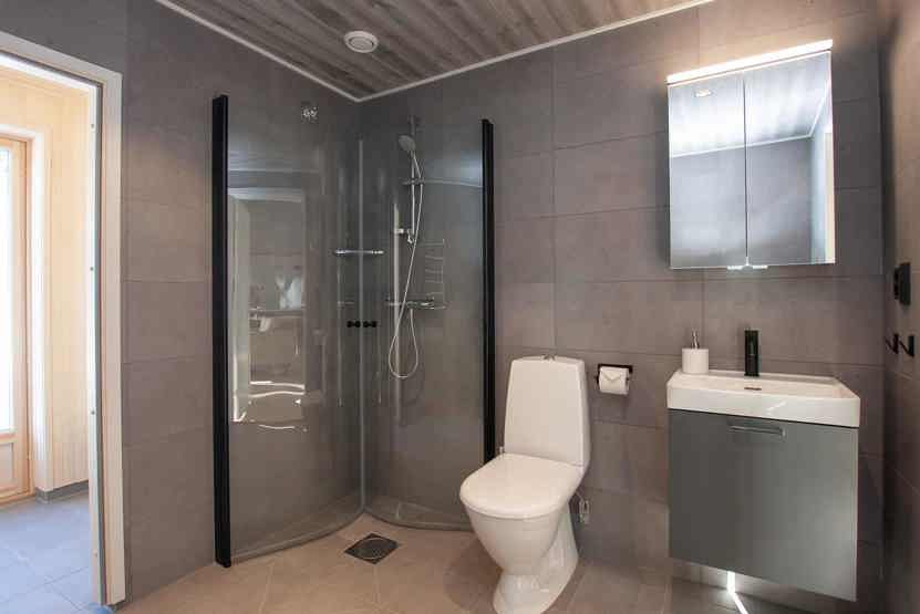 Badeværelse 1 = bruser, WC samt lille sauna. Badeværelse 2 = bruser/WC.