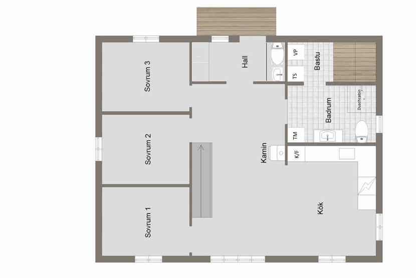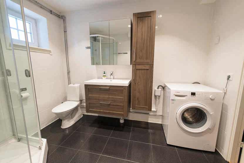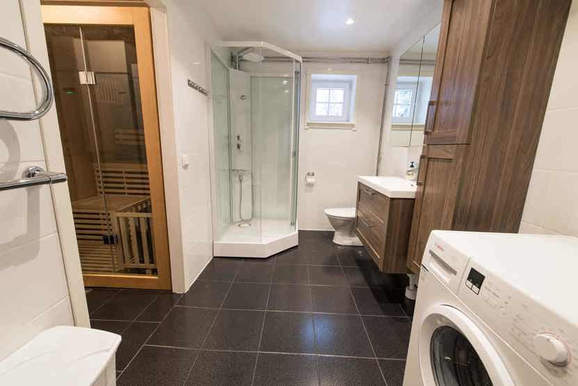Badeværelse 1 = bruser/WC/sauna. Badeværelse 2 = wc.