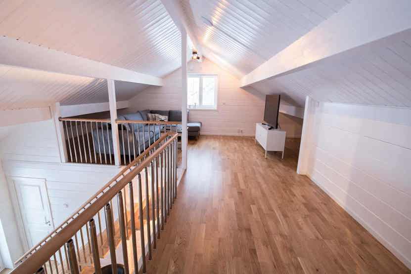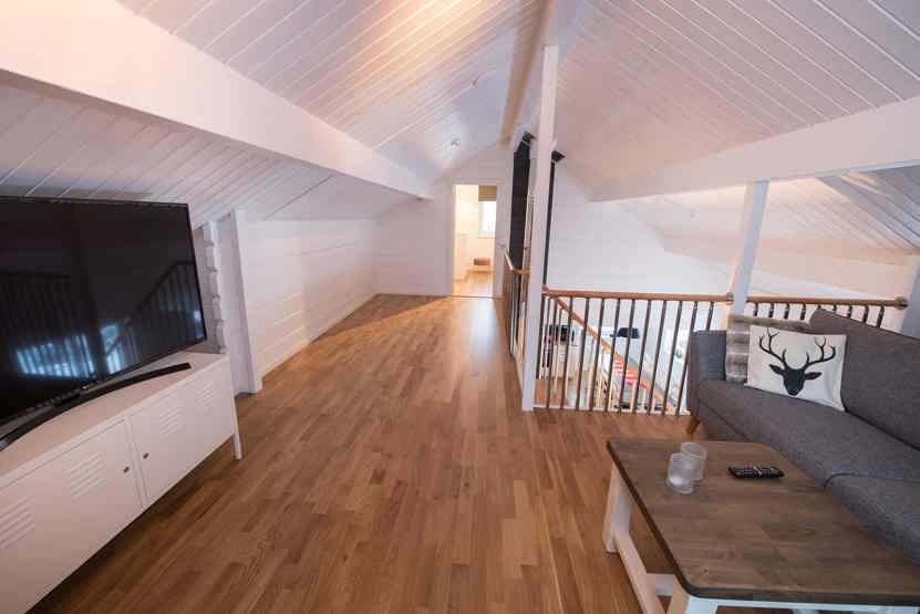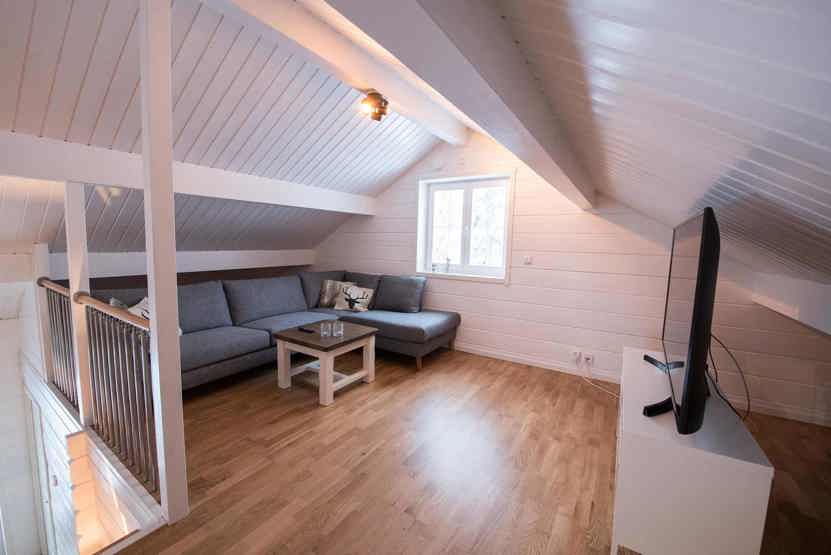 Utsikten ligger i Storhogna. Hytte med hems, 8 sengepladser, 100 kvm, alrum med køkkenafdeling, 4 soveværelse, 1 bruser, 2 WC, sauna.