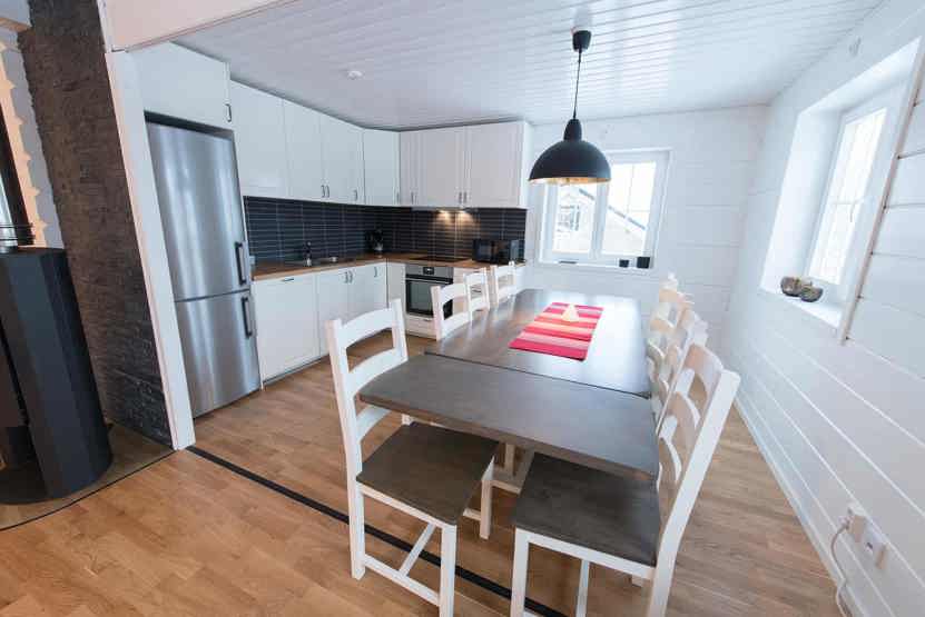 Køkkenet indeholder komfur med ovn, mikro, køleskab med fryser, opvaskemaskine.