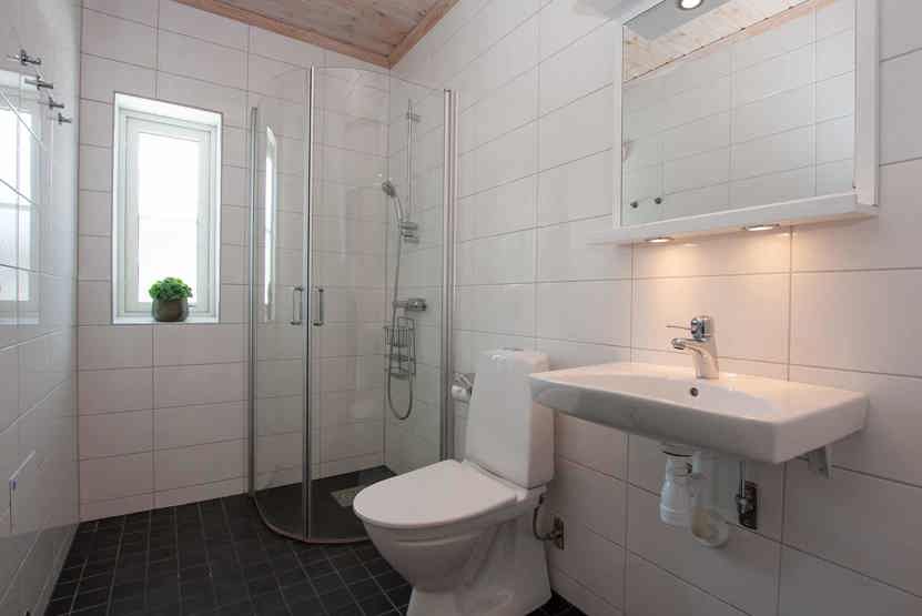 Badeværelse 1 = bruser/WC/sauna. Badeværelse 2 = bruser/WC.