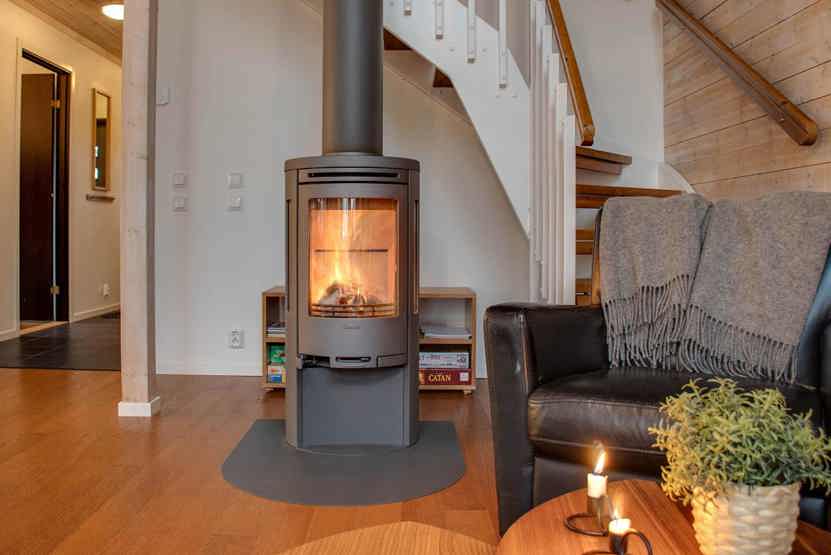 Stue med TV, lille køkkenafdeling, brændeovn (brænde indgår ikke).