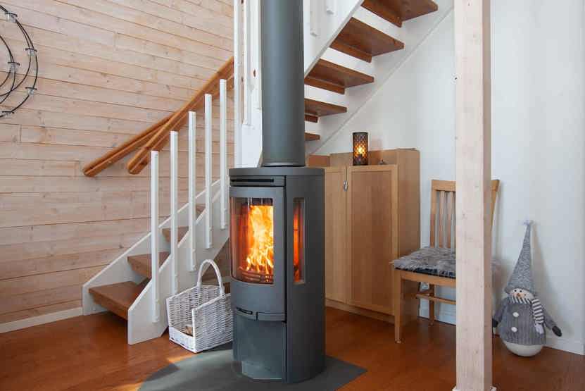 Stue med TV, lille køkkenafdeling, brændeovn (brænde indgår ikke).