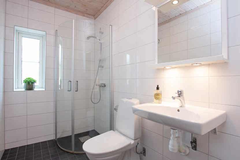 Badeværelse 1 = bruser/WC/sauna. Badeværelse 2 = bruser/WC.