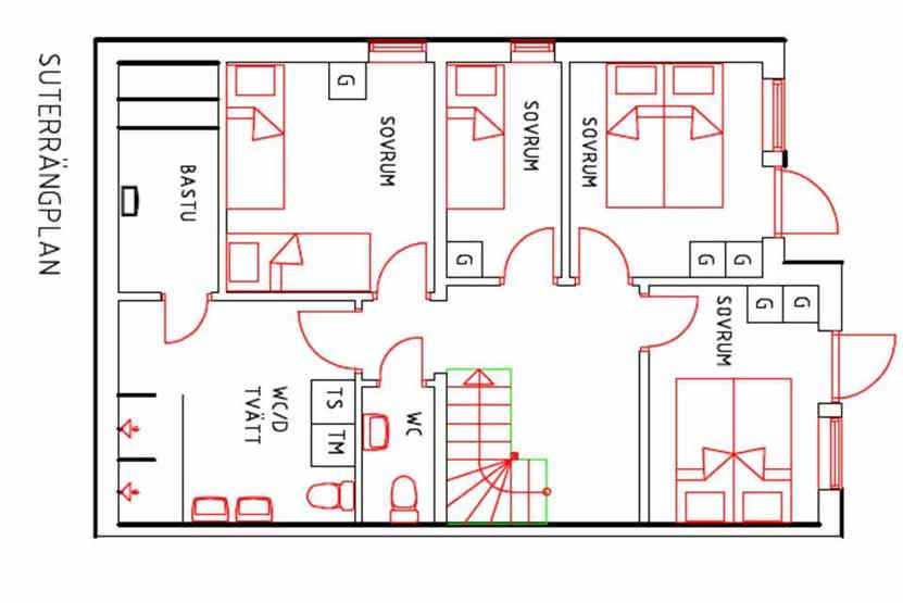 Soveværelse-1 = 1 dobbeltseng. Soveværelse-2 = 1 dobbeltseng. Soveværelse-3 = 1 dobbeltseng. Soveværelse-4 = 2 køjesenge. Soveværelse-5 = 1 køjeseng.