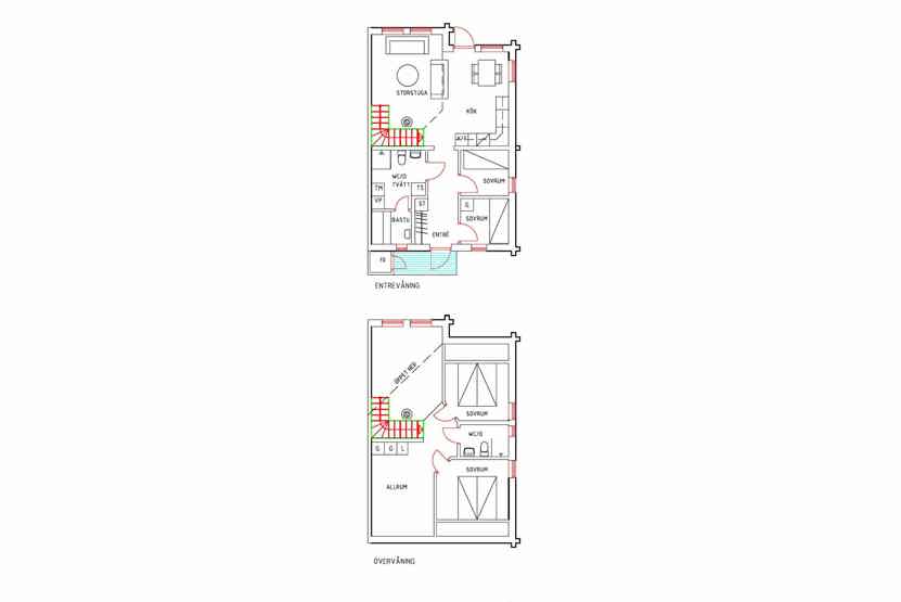 Badeværelse 1 = bruser/WC/sauna. Badeværelse 2 = bruser/WC.