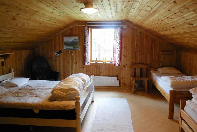 Soveværelse-1 = 1 dobbeltseng, 2 enkeltsenge.
